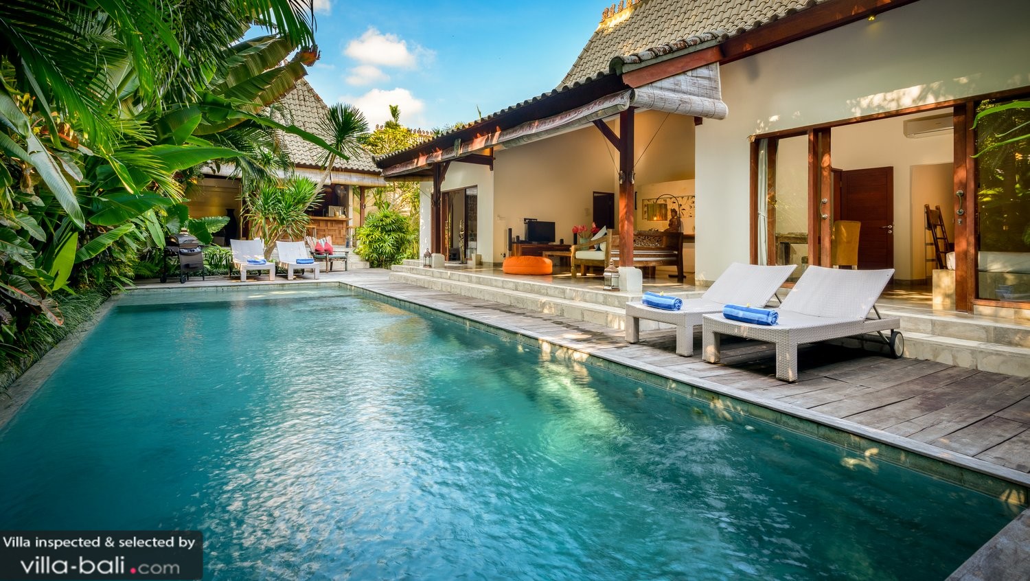 Villas in seminyak offers a captivating blend of luxury, intertwined with comfort, space and privacy. Seminyaks centrum är 4 km bort från villan. Every spacious seminyak villa compound has a private swimming pool with sunbathing terrace, lush tropical garden, kitchen, bar, living and dining facilities.